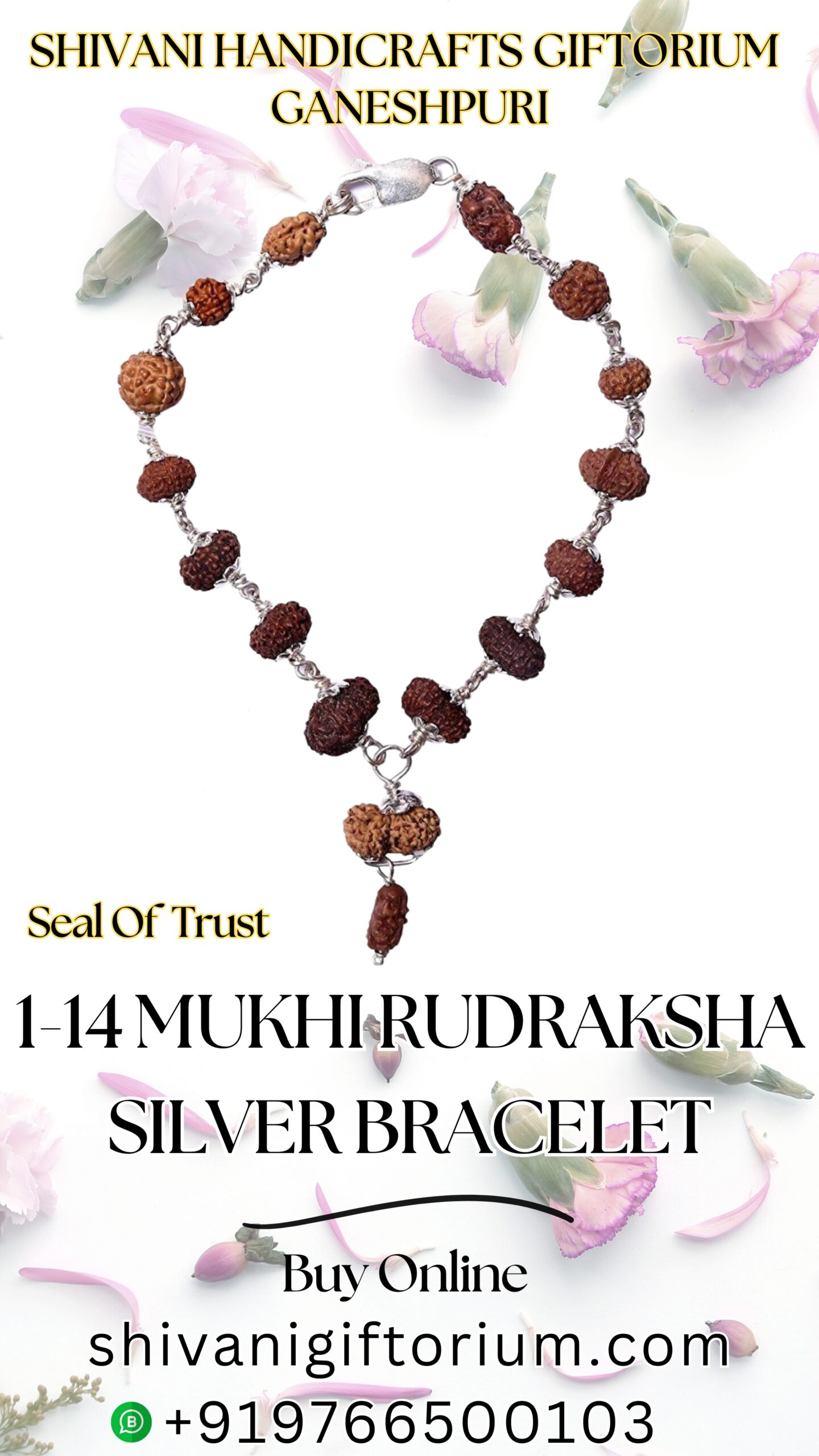 1 to 14 mukhi Rudraksha With Gauri Shankar Siddha Kantha with Certificate of Originality in Pure Silver…