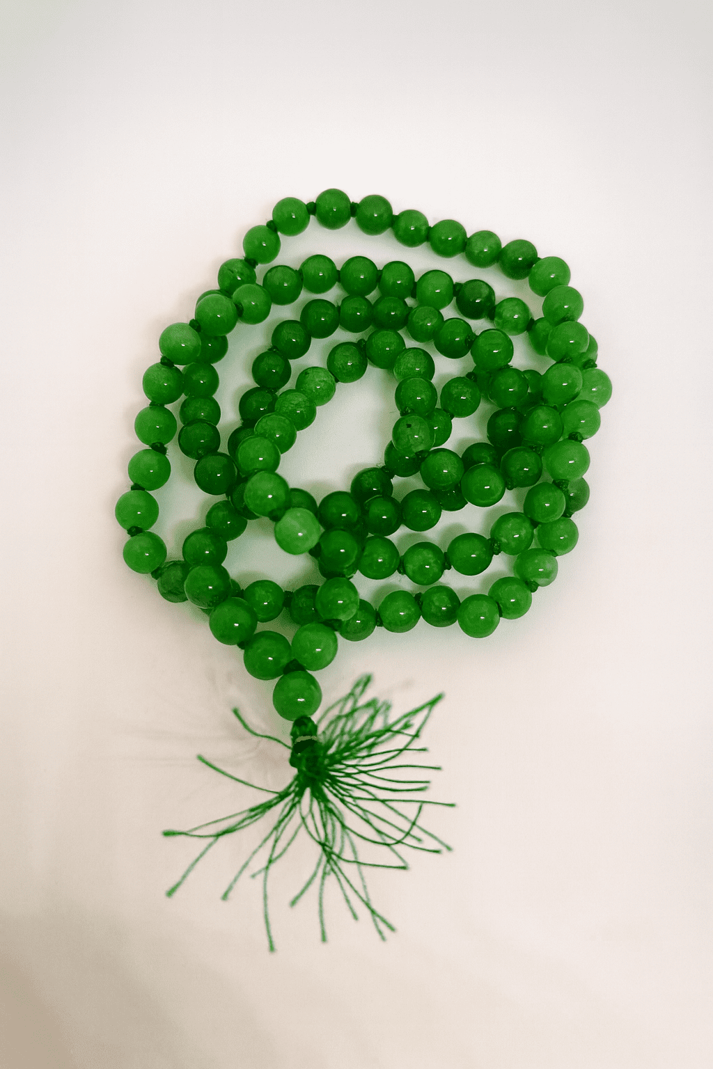 •Green Hakik Mala works well on the heart chakra and helps things to grow.