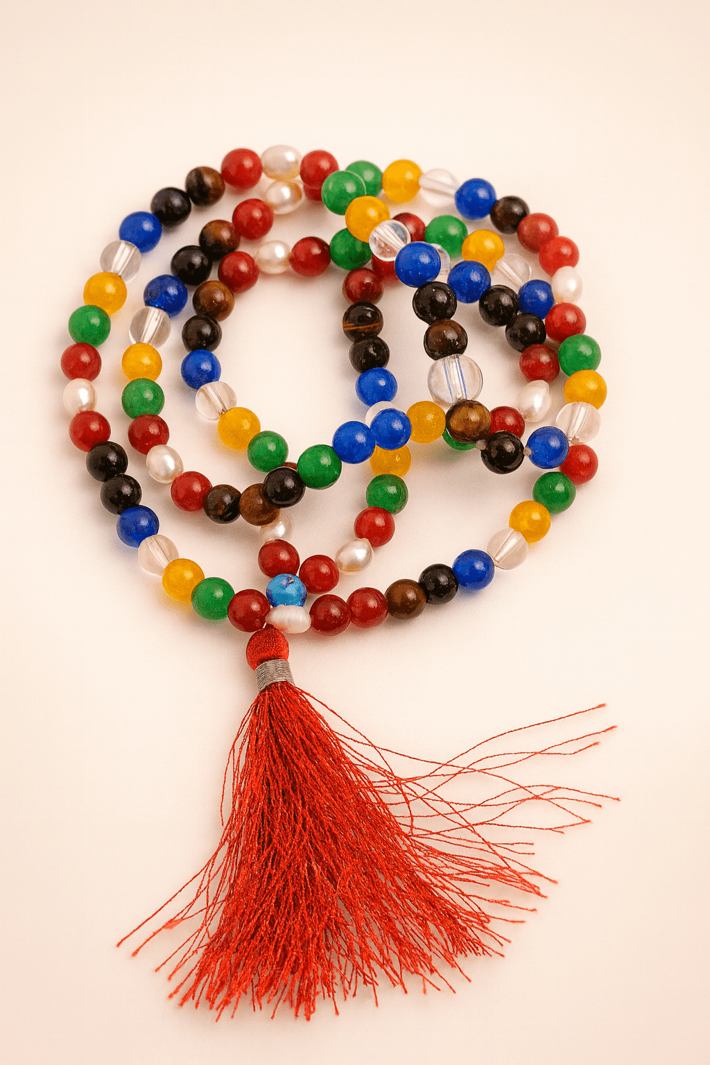 It is believed to help the wearer connect with their higher self and promote spiritual growth and development. The Navratna Mala is believed to offer several benefits to the wearer, including astrological benefits, healing properties, emotional stability, improved concentration, and spiritual growth.