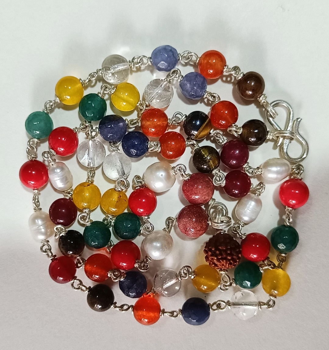 The navratna or nine gems influencing the nine planets are: Ruby (Sun), Pearl (Moon), Red Coral (Mars), Emerald (Mercury), Yellow Sapphire (Jupiter), Diamond (Venus), Blue Sapphire (Saturn), Hessonite (Rahu) and Cat”s Eye (Ketu). Featured in various astrological books, the navratna when arranged in a particular order are found to be beneficial for everyone. These gems intensify the rays of the planets they represent and are considered to be the best method for strengthening the positive influences of planets. Each gem stone is specific to a certain planet and reflects the positive traits of that planet. One can even wear navratna without showing one”s horoscope to an astrologer. The navratna are widely regarded as being beneficial in all kinds of diseases, but especially those caused by contact with poisons. They are also a safeguard against misfortune, help ward off danger, and remove obstacles in life.