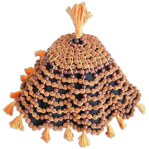 The Rudraksha Red Sandalwood Bead meditation Hat / Cap / Topi is made by hand weaving together more than 1000 beads of high quality Rudraksha of size 10mm along with Red Sandalwood Beads. It is developed using references from Shiva Purana. As stated in Purana: wearing different number of Rudraksha on different parts of the body helps attain Rudrahood.